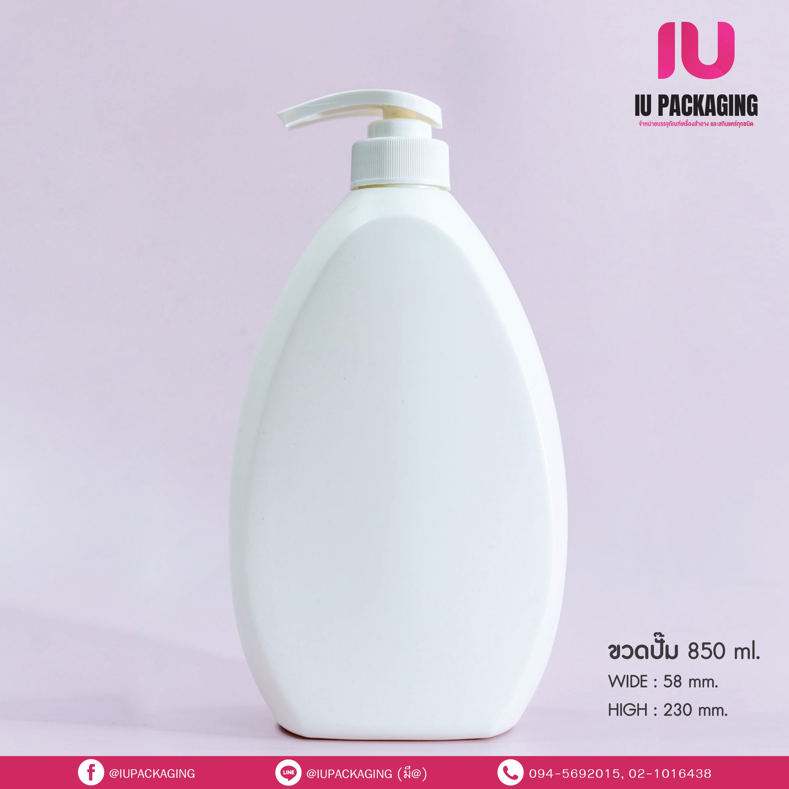 ขวดทรงหยดน้ำพร้อมฝาปั้มสีขาว ขนาด 850 ml.